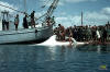 In Aqaba gönnten wir uns ein paar Tage eine Ruhepause. Genossen das warme Wasser und schnorchelten in der Bucht. Plötzlich hörten wir ein wildes Durcheinander der Einwohner, sie rannten und gestikulierten miteinander und schauten auf das Meer. Jetzt sahen wir auch, dass sich ein Schiff näherte, welches ein riesiges Tier im Schlepptau hatte. Sie hatten einen Riesenhai harpuniert. Zum Glück sind diese Haie Planktonfresser.
